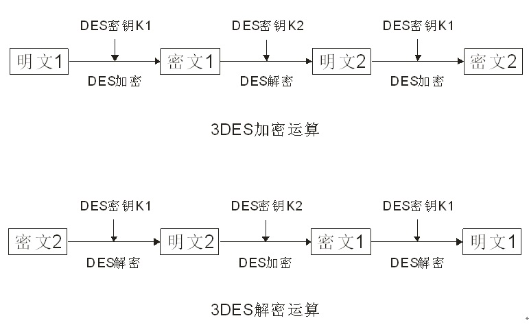 3DES是針對DES算法密鑰過短、而改進(jìn)的一個(gè)措施,被稱為“3DES”。其實(shí)是通過執(zhí)行3次DES來達(dá)到增加密鑰長度和安全。3DES—密鑰長度為16字節(jié),數(shù)據(jù)為8字節(jié)。